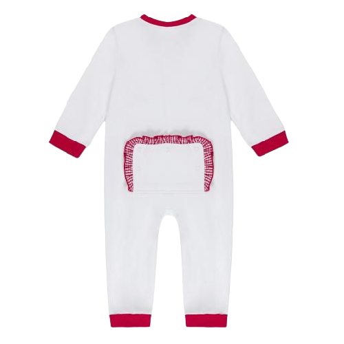 Our gingham unionsuit features 100% combed knit cotton with a zip front and adorable gingham trimmed functional drop flap in the back! Simply add a monogram to make a boutique girls's outfit or gift!