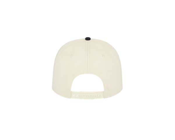 A cream premium snapback featuring a classic arched design.